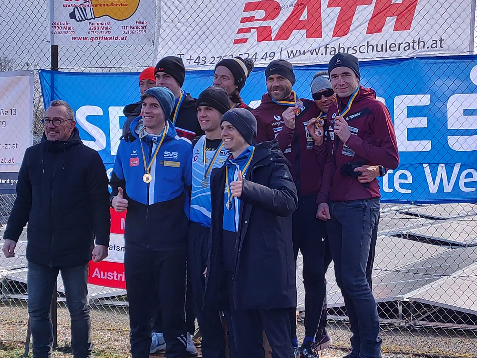 Auf der 3,5 km langen Strecke finishte Stefan mit 12:18 als gesamt 7. Richard mit 12:26 nur knapp dahinter als gesamt 9. Für Richard bedeutete diese Zeit aber auch der Landesmeistertitel in der Klasse M50. Ein Gefühl dass Richard schon kennt, denn damit hat er seinen Titel aus 2022 in Tulln verteidigt – rechtherzliche Gratulation. Patrick konnte sich mit 12:51 den gesamten 15. Rang sichern und wurde in der sehr stark besetzen AK 11. Peter holte den 7. Platz in der Klasse U18 mit einer Zeit von 14:00. Der Punkt am i aber war dann noch die Bronzene Medaille in der Mannschaft von Patrick, Stefan und Richard, der 3. Platz hinter SVS Schwechat und Union St. Pölten wiegt aber wie Gold.